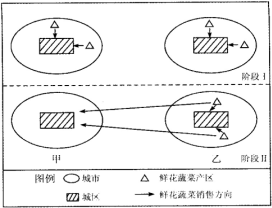 1.阶段Ⅰ鲜花和蔬菜产区形成的主要区位因素是2.阶段Ⅱ鲜花和蔬菜产区的区位变化主要是因为3.若甲城市在河北省,乙城市在广东省,则阶段Ⅱ运输量?最大的季节应在