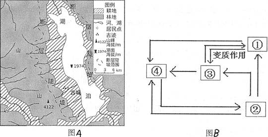 5、单选题 图A示意我国西南某区域土地利用类型,图B为地壳物质循环示意图,读图回答下列题。
