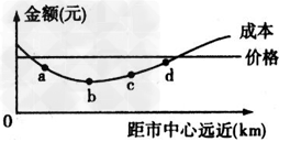 1、单选题  读某工业产品价格或成本与城市中心距离的相关曲线图,回答1—3题。