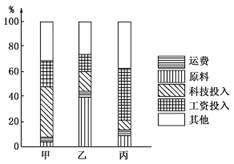 4、单选题  读三类工业产品成本构成示意图,完成(1)~(3)题。