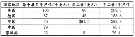 部分国家劳动力工资和产值对比