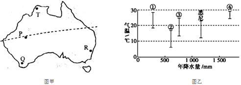 【小题3】图中给出了五地年内气温年较差(包括最高温与最低温)、年降水量情况。P地因位于南回归线地区的大陆内部,常年受副高控制,为热带沙漠气候,终年高温少雨。故①符合,D正确。