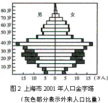 (2)读图2分析上海外来人口相对集中的年龄段,并分析外来人口对上海经济的影响。