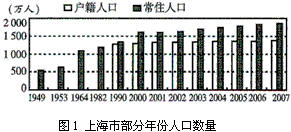(1)读图1归纳1990年以来上海市人口数量的变化状况并结合所提供的图表和所学知识分析原因。