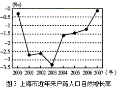 (3)据图2从人口的数量和年龄构成两方面分析目前上海存在的主要人口问题,并提出建议。
