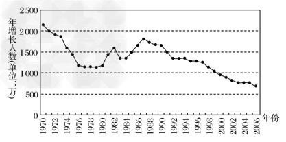 加大投资力度,世界三大疫苗生产商齐聚中国,分别在广东、浙江和江苏等地设厂。结合“我国年增长人数示意图”,完成1~2题。