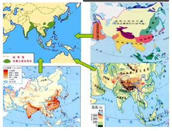 (2)结合上图的信息,根据亚洲的气候分布情况,可以判断出A、B、C三地均为季风气候区。