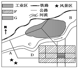 (3)材料图中F、G两地适合建商业区的是?,理由是?。(2分)