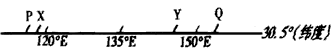 2、单选题 下图为世界地图上的一段纬线,P点以西Q点以东为海洋,PQ为陆地。回答1—4题。