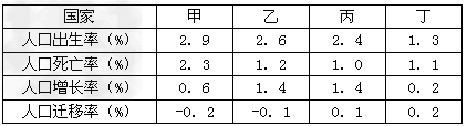 1、单选题 下表为四个国家某一年的人口变动数据,回答1~2题。