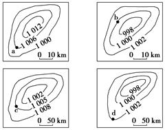 4、单选题 读下面四幅“气压分布图”,回答问题。