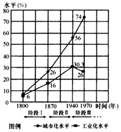 4、单选题 读某国工业化、城市化进程比较图,回答1~2题。