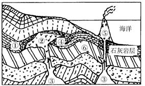 A.①——天然气 B.②——煤炭 C.④——大理石 D.⑥——石油 4、单选题 下图为某地地质剖面示意图,其中①至④代表岩石年龄由新到老的不同岩层。据此回答下列问题。 |