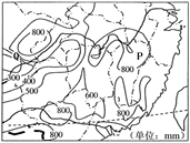 2、单选题 下图为我国部分地区多年平均地面实际蒸发量分布图,完成题。