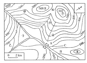 【小题1】图示Ⅰ山顶与甲村的高差可能为( )