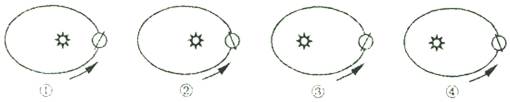 4、单选题 下列四幅表示地球绕日公转的示意图,最有可能表示地球处于冬至日节气的是( ?)。