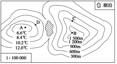 2、单选题 下图为“某地等值线分布图”,读图完成下列问题。