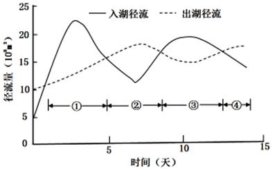 5、单选题 下图为某次长江洪水过程洞庭湖入、出湖径流量的变化。这段时间洞庭湖对长江洪水产生蓄积作用的时段是
