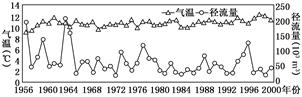 本题解析:本题考查我国的河流。根据图中气温和径流量之间没有明显的相关性,所以可以推出冰川融水不是主要的补给类型,而地下水和湖泊水都不是我国河流的主要补给类型,所以推出是雨水是主要补给类型。