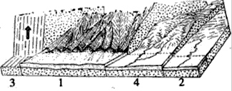 (1)图中1、2、3、4表示同一区域在不同时间段的地形状况,其按时间排列的顺序是______________。