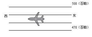 4、单选题 如下图所示,一架飞机在北半球高空自东向西飞行,可判断出