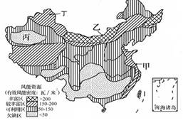 1.关于我国风能资源分布的叙述,错误的是2.据调查,甲地区风能资源利用前景优于丁地区,其原因是