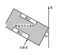 【小题2】以二分日阳光照射情况入手分析。二分日昼长为12小时,日出正东,只有太阳升到东偏南40°时,阳光才能照到阳台。也就是日出2小时40分后,阳光开始照射阳台,直到日落,照射时间长为:
