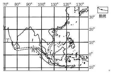[? ] A.在北半球夏季出发,经丙地直航到丁地 B.在南半球夏季出发,经丙地直航到丁地 C.在北半球夏季出发,航行到丙地等候下一个风季 D.在南半球夏季出发,航行到丙地等候下一个风季