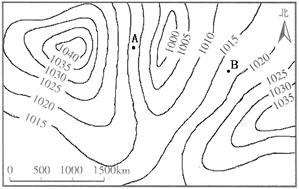 (3)如果图中的低压中心大致以每小时20千米的速度向东南方向移动,48小时后B地将出现________天气。