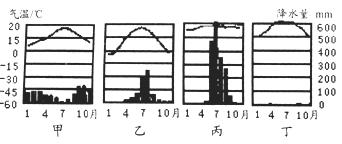 (1)四幅图中,全年降水稀少的是 ,冬季降水少,夏季降水多的是 。
