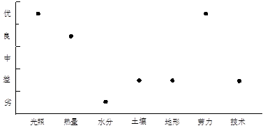 2.该地区的优势条件是光照和劳力,最差的是水分。符合的是我国的西北地区。