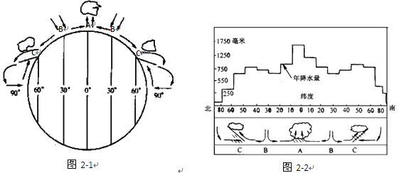 参考答案:B 本题解析: 本题难度:一般 3、单选题 下图 “表示气温、降水与气候类型的关系”。读图回答下题。 参考答案:1. C 本题解析:第6题,图中纵坐标表示温度,纵轴长度越大,年温差越大。所以温差最大的一组是④⑥⑦。第7题,从图中可以看出①气候类型的特点:最低月均温大于20℃,年降水量在1500mm以上,可以判断为热带雨林气候。第8题,⑦气候类型最低月气温在-20℃,最高月气温只有10℃左右,年降水量不足300mm,可以确定为苔原气候。第9题纬度地带性主要体现为温度的差异,尤其是冬季温度的差异,①⑤④⑥冬季温度依次递减。 本题难度:困难 4、单选题 下列有关黄淮海平原气候的叙述,正确的是 …(? ) 参考答案:D 本题解析:黄淮海平原地区属于典型的温带大陆性季风气候,降水集中在夏季,气温年较差大,春旱多风沙。伏旱发生在长江中下游平原。 本题难度:简单 5、单选题 不同的温度带与不同的干湿地区相互组合,造就了我国复杂多样的气候区。读下表,回答问题。