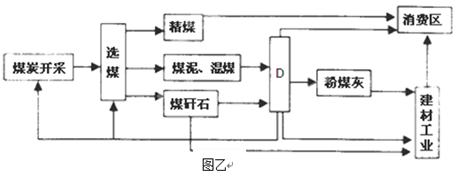 ②从图乙中可以看到,发电后 的粉煤灰,成了建材工业的原料,实现了充分利用废弃物,减少污染物排放的目标。发展了经济,也保护了环境。