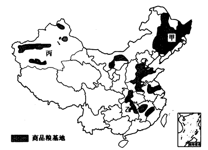 (2)与丙相比,甲商品粮基地发展农业的区位优势有哪些?