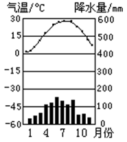 5、综合题 分析某地降水、气温分布图,回答下列问题:(每空2分,共10分)