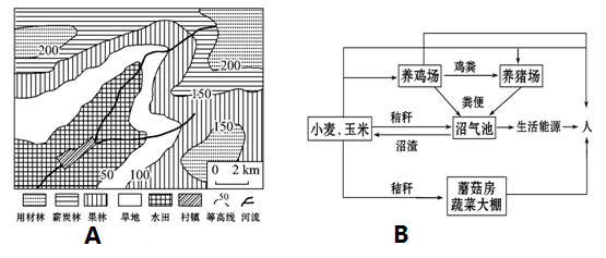 A.甲地雨热同期,但气象灾害频发 B.乙地气候湿润,适宜发展种植业 C.丙地劳动力丰富,交通便利 D.丁地土地广阔,灌溉水源充足 2、单选题  在欧美发达国家,提高农业产出的重要手段是(? ) 3、综合题  下图中图A为我国华北某地土地利用类型分布示意图(等高线单位:m),图B为该地区生态农业园区结构示意图。读图完成下列问题。(20分) 4、单选题  下图是亚洲水稻的主要分布区图,读图完成下列问题。 |
