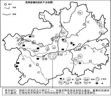 材料一?贵州省城市及矿产分布图