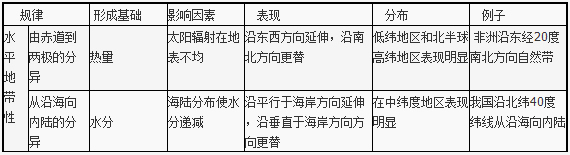 D.从赤道向两极的地域分异(纬度地带性规律)