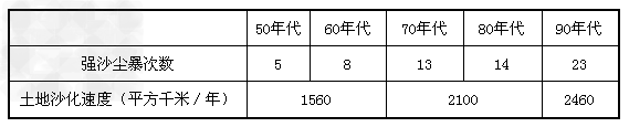 1.表中显示我国的土地沙化速度在不断加快,其原因最可能是