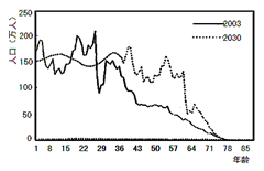 2、单选题 读我国某省2003年与2030年人口年龄结构比较图,完成小题。