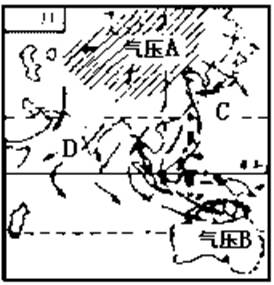 3、综合题 读下面季风环流示意图,回答下列各题。(每问2分,共20分)