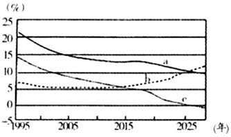 2、单选题 下图是我国人口增长走势及预测图,图中三条曲线表示出生率、死亡率、自然增长率。读图回答1~2题。