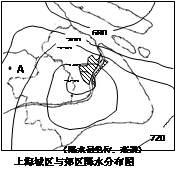 5、单选题 读上海城郊间气温差异情况表和上海城区、郊区降水分布图,完成各题。
