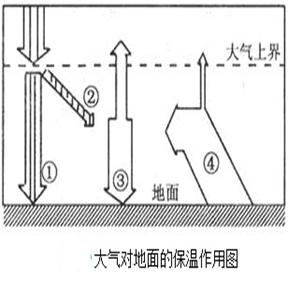 1.图示箭头中,代表近地面大气主要直接热源的是2.表示大气补偿地面辐射损失热量的箭头是