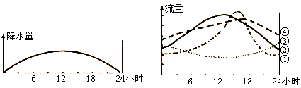 (2)若下图为上题谷地中某一天降水量与河流径流量变化示意图,其中最能反映集水区域内植被覆盖良
