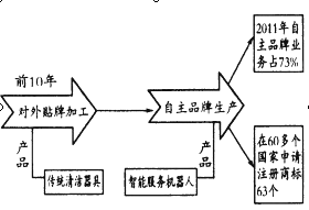 小题2:读图,根据图中信息可知,2011年,该公司以自主品牌生产为主,A对、B错。该公司是在多个国家注册商标,不是建分厂,不能表明以工业分散为主,C错。从产品看,应是转型为技术导向性工业,D错。