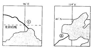 本题解析:1.从图示的经纬度位置与海陆轮廓可以判定①、②分别位于恒河和黄河河口,它们的气候类型都雨热同期的季风气候,河口的地势都比较平坦。故选A