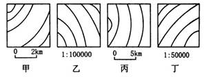 3、综合题 (12分)甲、乙两图分别表示两个不同地区的等高线地形图(单位:m)。读图,回答下列问题。