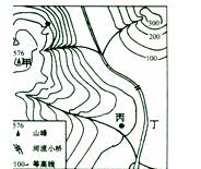 B处地形是 (山脊、山谷),若图中有一条河流,则该河流应在 处附近,流向 。(6分)
