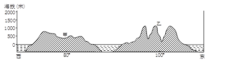 4、单选题 下图是沿20?N纬线所作的地形剖面图,回答题。